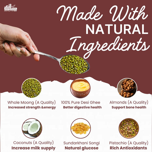 Postpartum Special 02- 1kg Mong Dall, 1kg Alsi ki Pinni. 950ml Kashmiri Chai Qehwa