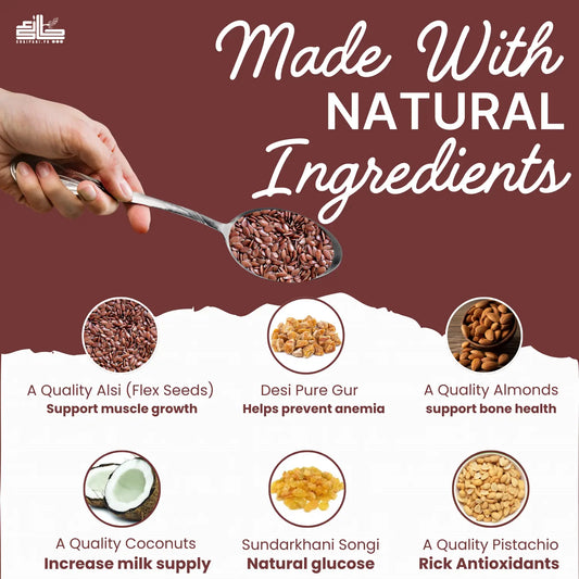 Postpartum Special 01- 500g Mong Halwa, 500g Alsi ki Pinni. 480ml Kashmiri Chai Qehwa